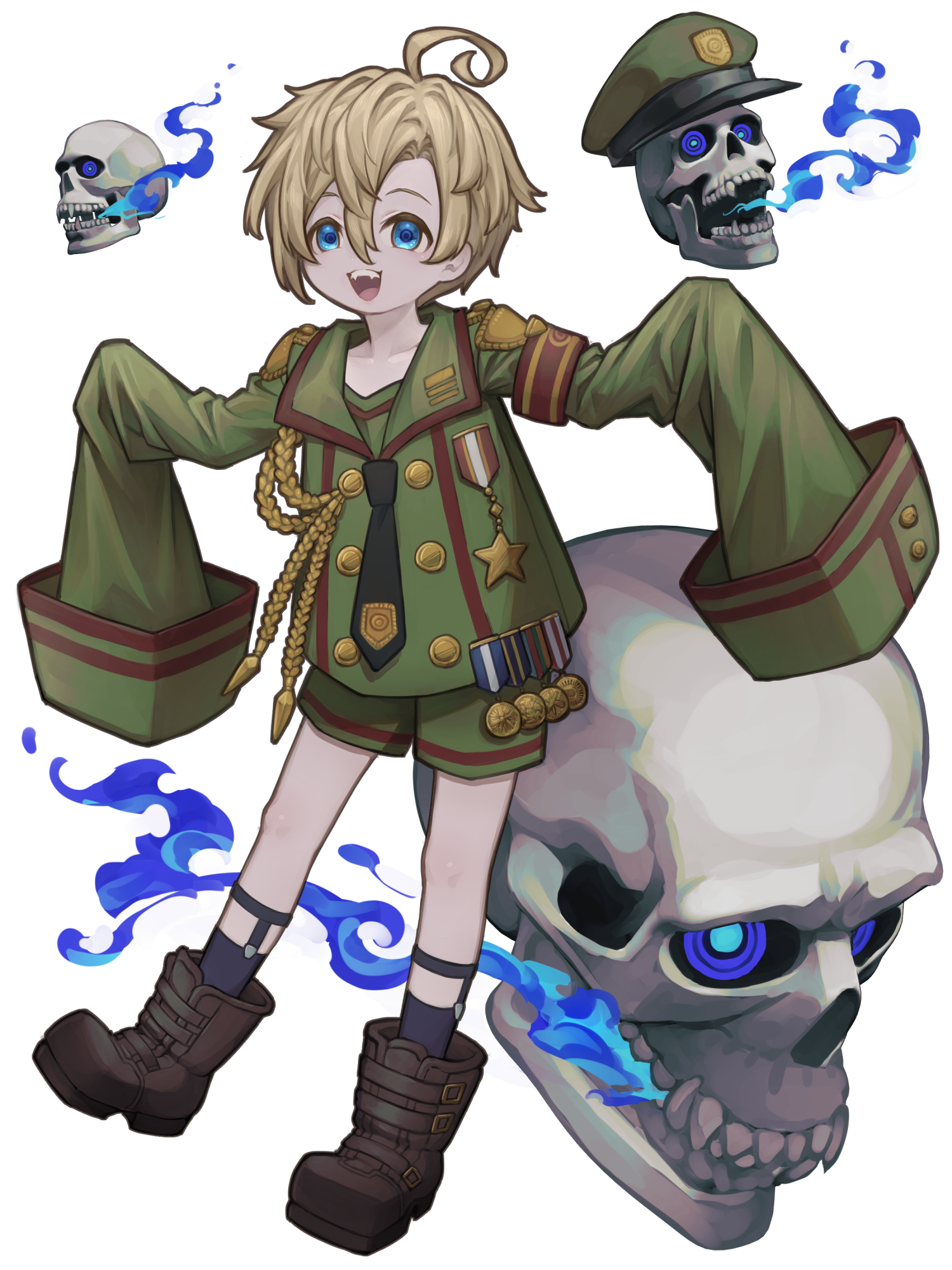 金髪碧眼、純粋を絵に描いたようなあどけない顔立ちの少年。その実態はすでに滅した『帝国』の将。故国再建を掲げた志はとうの彼方。いまはただ、かつての『部下』を従え、己が野望のために各地を彷徨う存在。