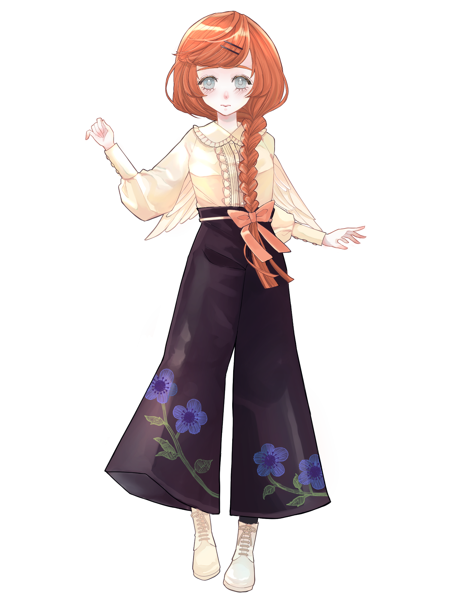 外見: 灰色の瞳、オレンジの髪、色白の肌