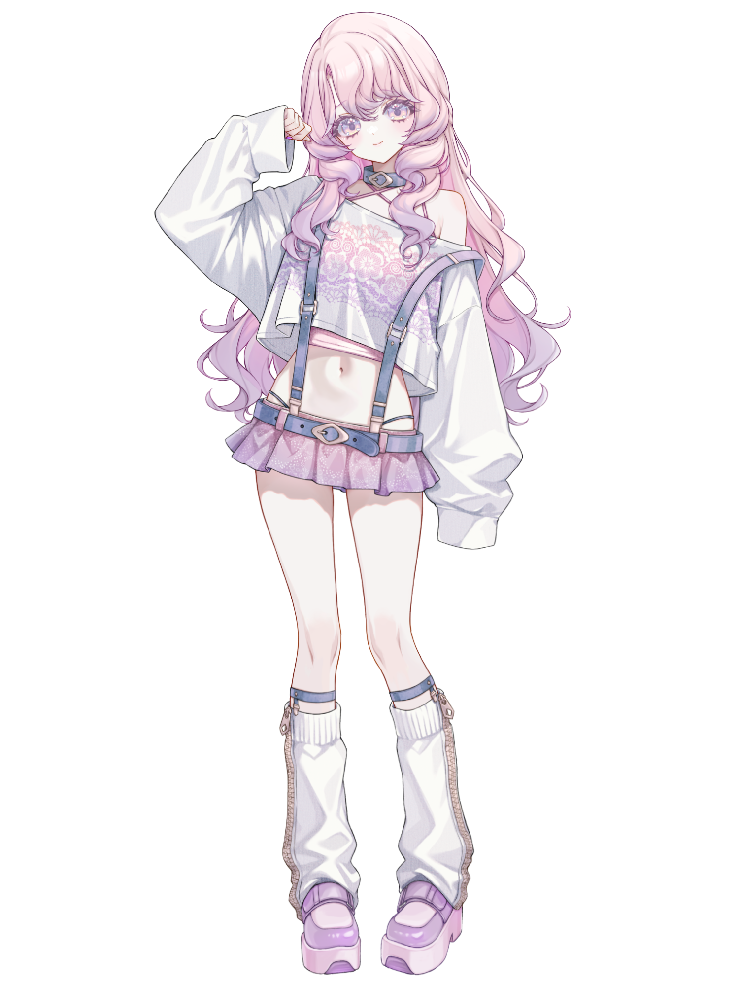 外見: 紫の瞳、ピンクの髪、乳白色の肌