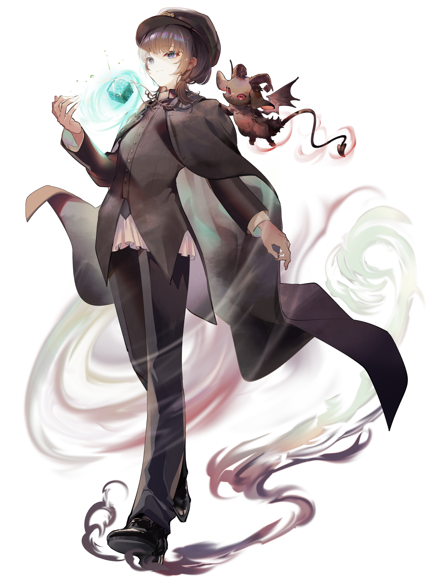 📖黙して佇む姿は何処か厭世的でダークな影を纏う。でも一度口を開けばその印象は鮮やかに裏切られ、軽快で屈託のない明るさが顔を出す。虐げられた者を見ると放っておけない甘さもあったり。ただその一方で魔女のような厭味で陰湿で…そんな底知れぬ腹黒さもまた彼を構成する魅力的なスパイスとなっている📖魔女狩りから逃れる為に教会に預けられた子で、実は「お菓子の魔女」の血を継ぐ立派な魔女。現在はポーション屋経営中