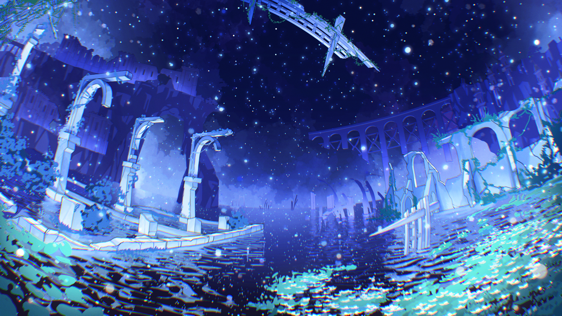 夜空に浮かぶ月色の髪、黄昏空に似た朱色の瞳。螺旋状に捻れた黒角を持つ竜族の青年。もう飛ぶことのない翼は常に隠している/緩りと漂う浮き草暮らし。旅の吟遊詩人。夜の帳が下りる頃、穏やかな竪琴の音色と共に彼の歌声が響くと云う/基本的には温和で友好的。やや浮世離れした面もあり、思考は良くも悪くもマイペース/失くした星の名を探し、永久に続く星の海を彷徨う。翼を持たない渡り竜。