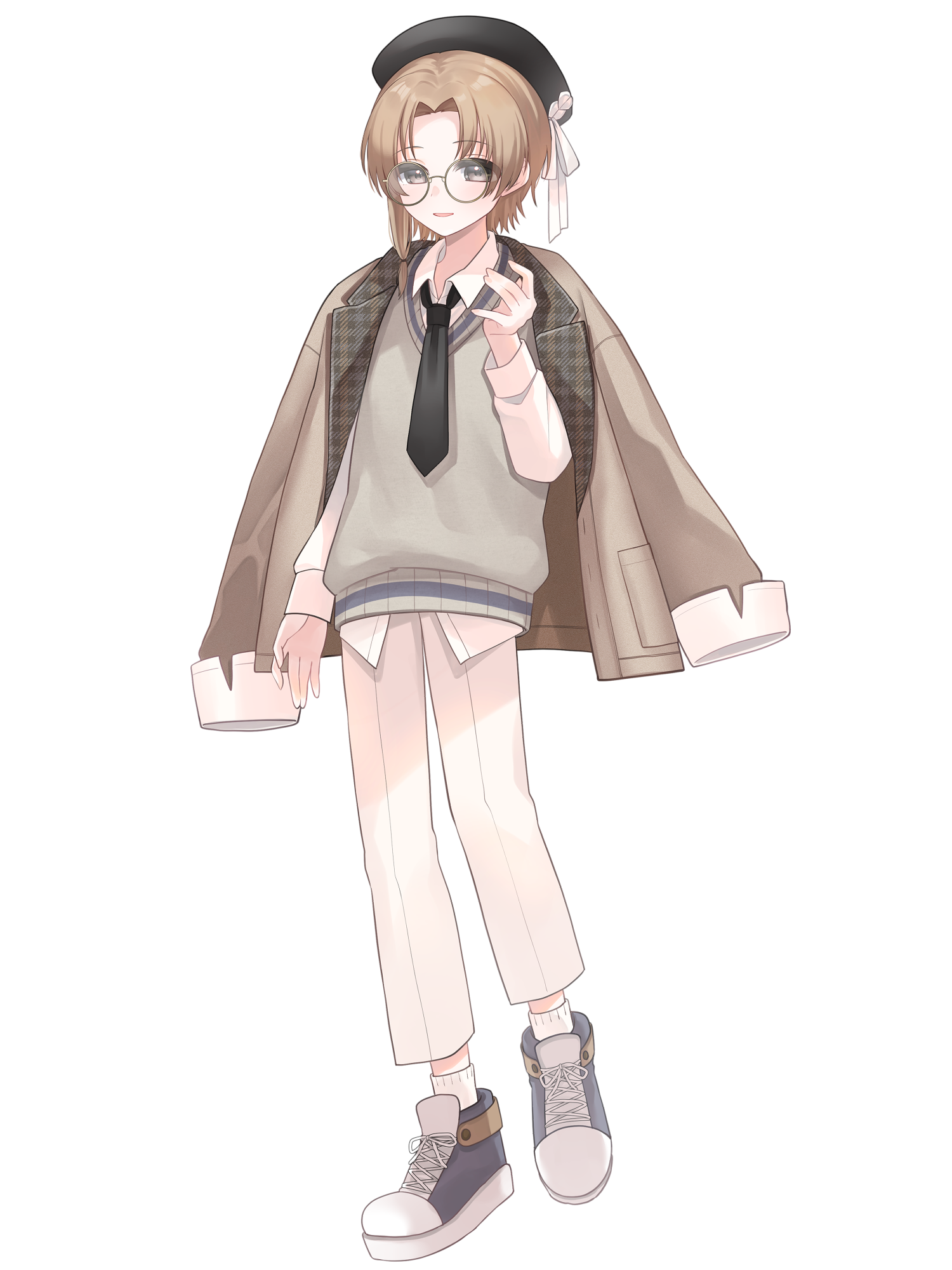 外見: 焦茶色の瞳、茶色の髪、色白の肌