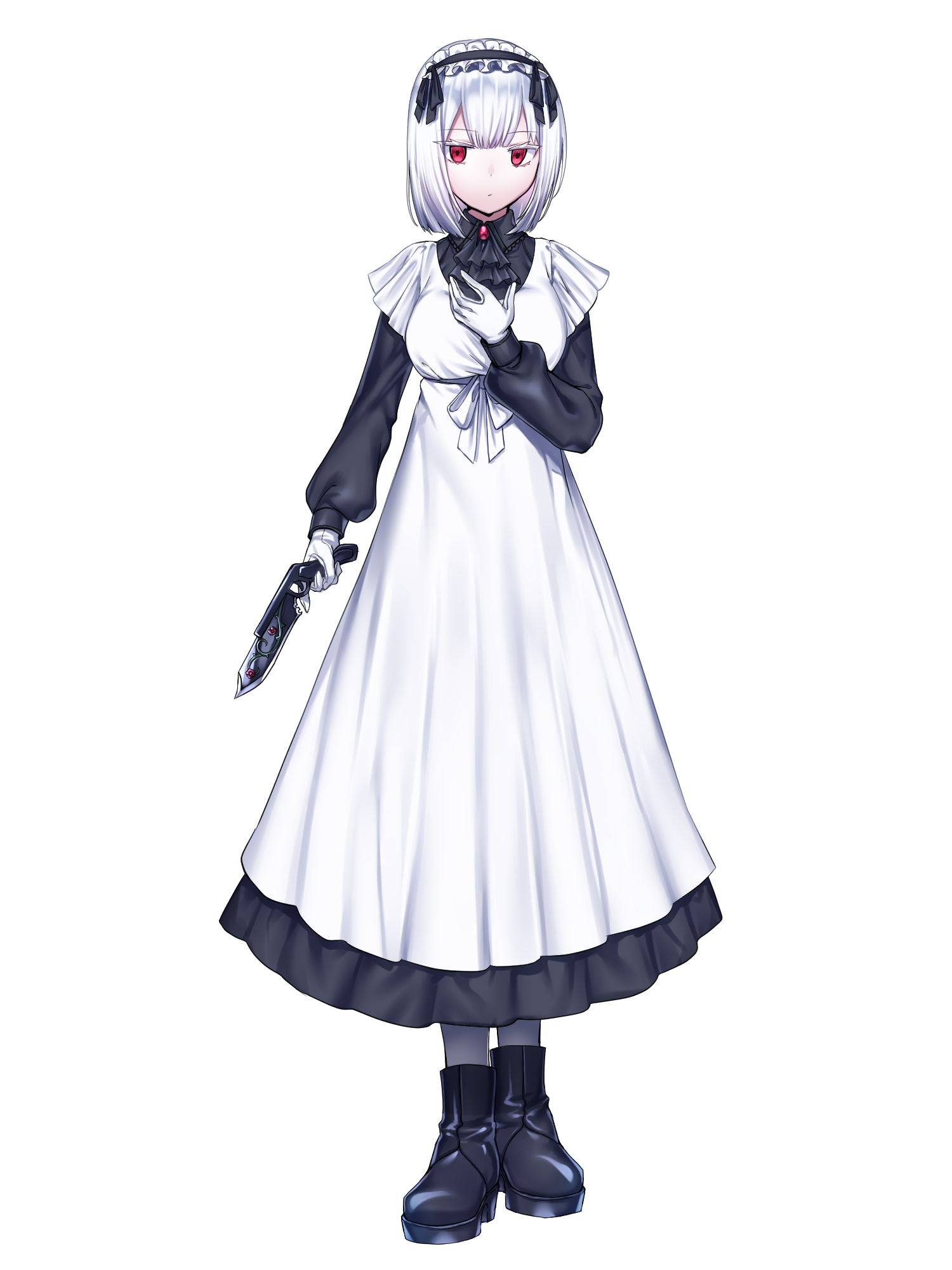 外見: 赤い瞳、銀髪、色白の肌