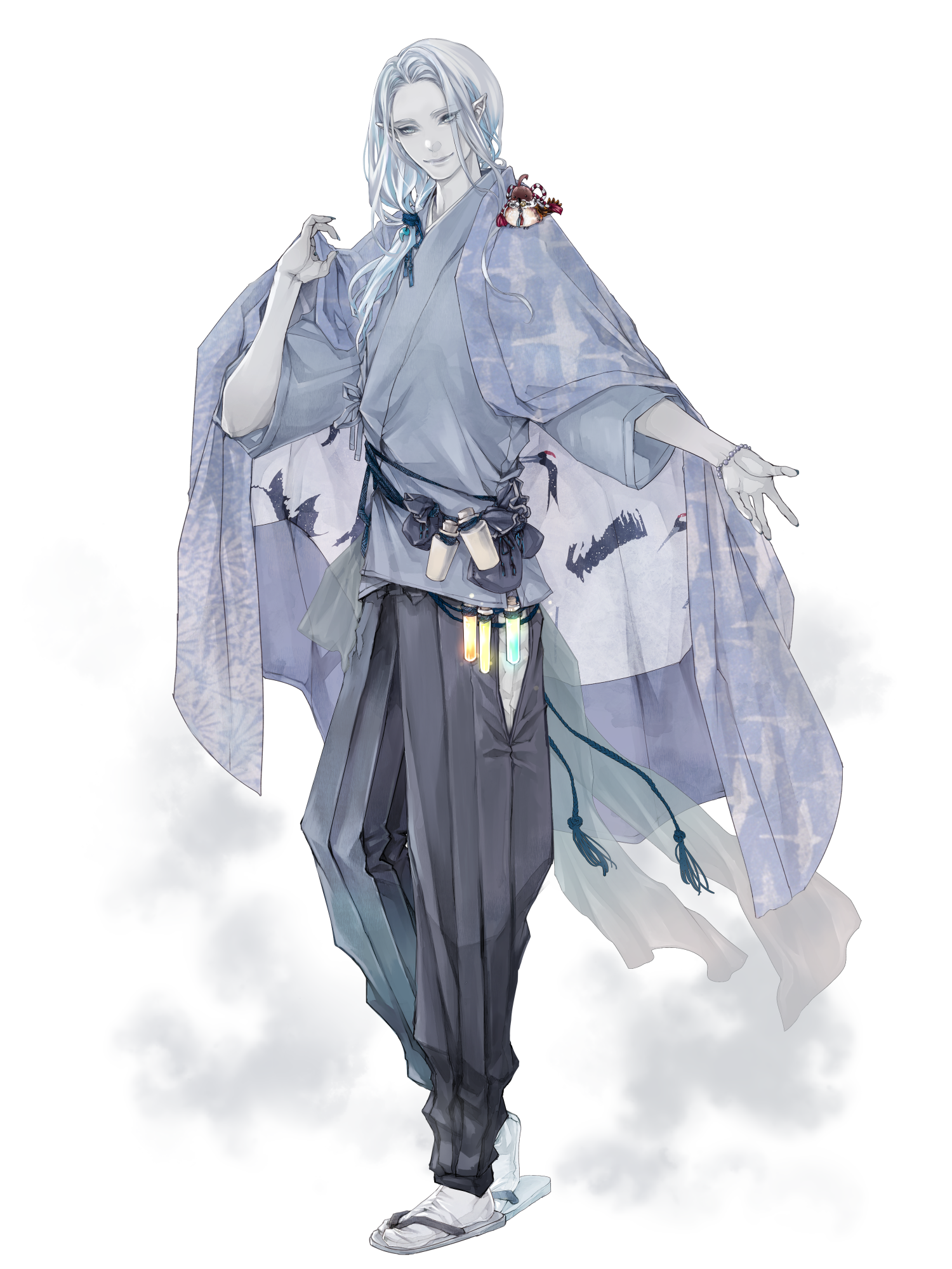 外見: 青い瞳、白い髪、灰色の肌