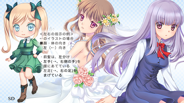 ■髪型・服装・装飾品などは詳しく描いていただいた方が助かります。