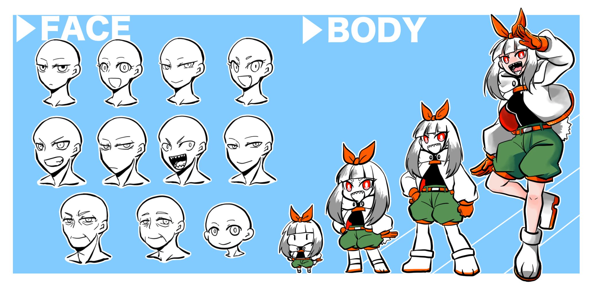 色は原色をよく使用しますが発注内容やキャラクターの雰囲気に応じて臨機応変に対応させていただきます。
