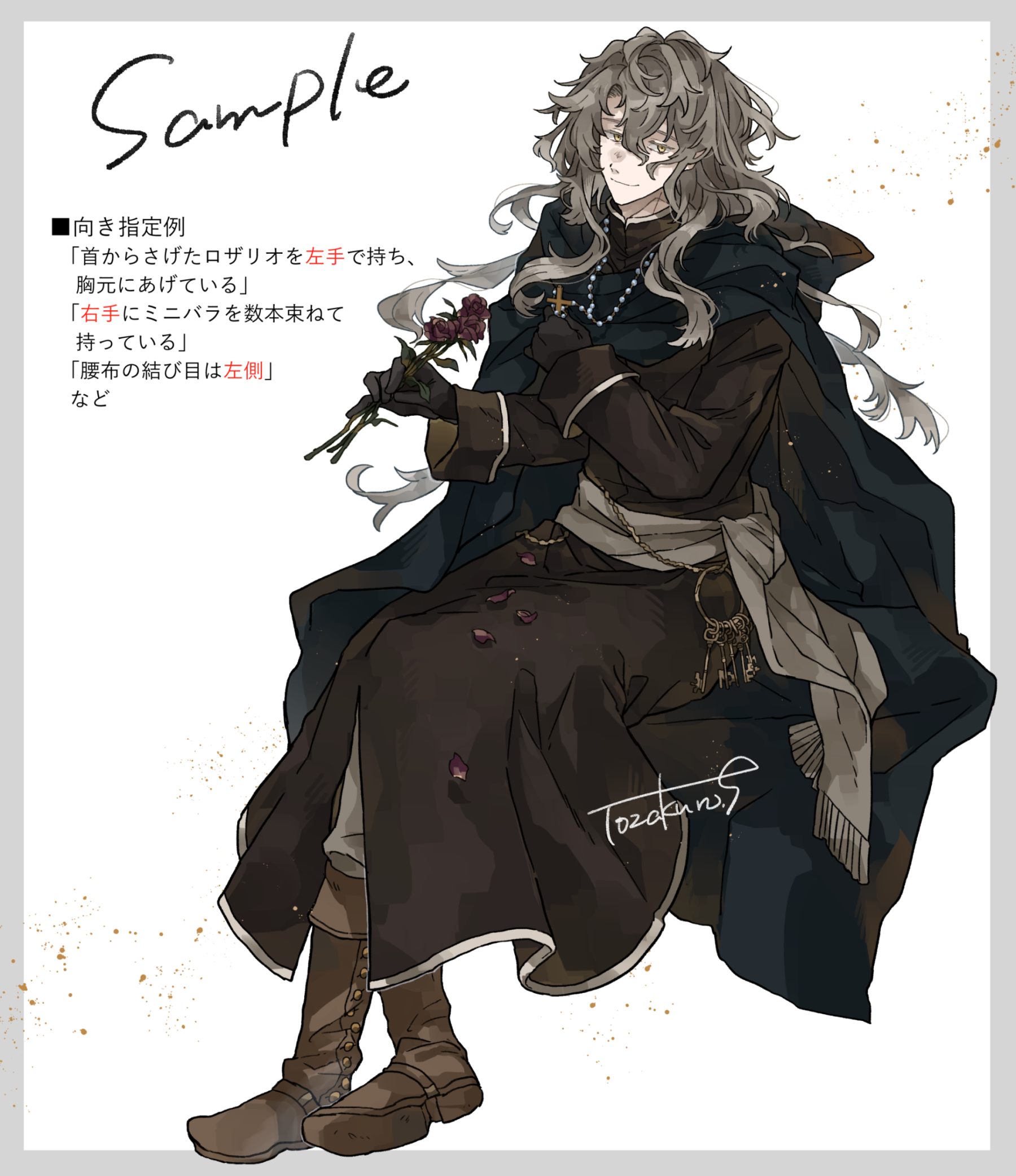 ・民族衣装風の服装はだいたいの国・地域・雰囲気の指定があると反映しやすいです。「何色でもいいけれど、○○色以外がいい」といった希望がある場合も明記して頂けると嬉しいです!