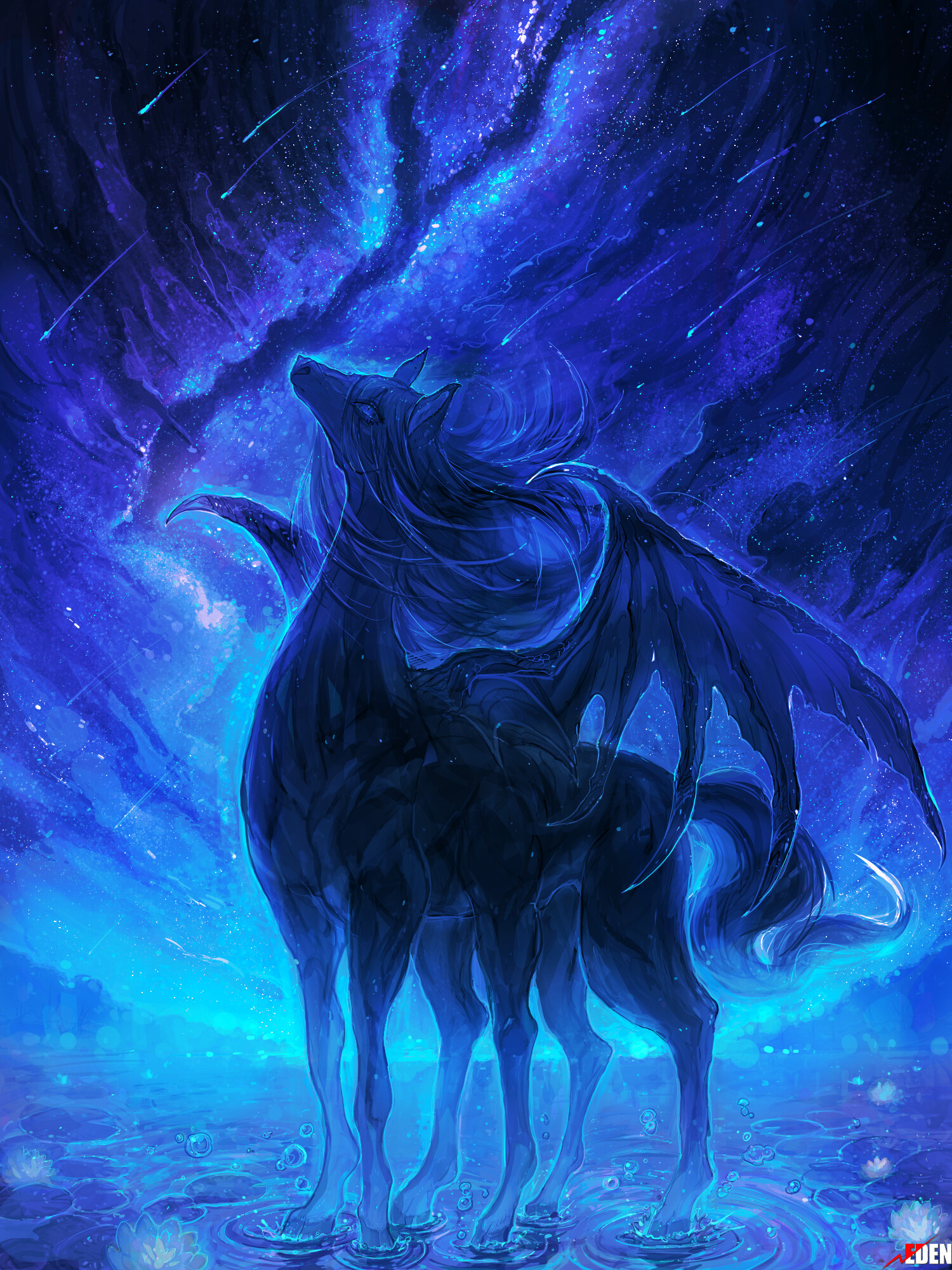 【銀河の輝きに満ちた霊気】を纏う。自身の移動速度が3倍になり、装甲を貫通する威力2倍の近接攻撃「【突進】」や「【翼を用いた薙ぎ払い】」が使用可能になる。