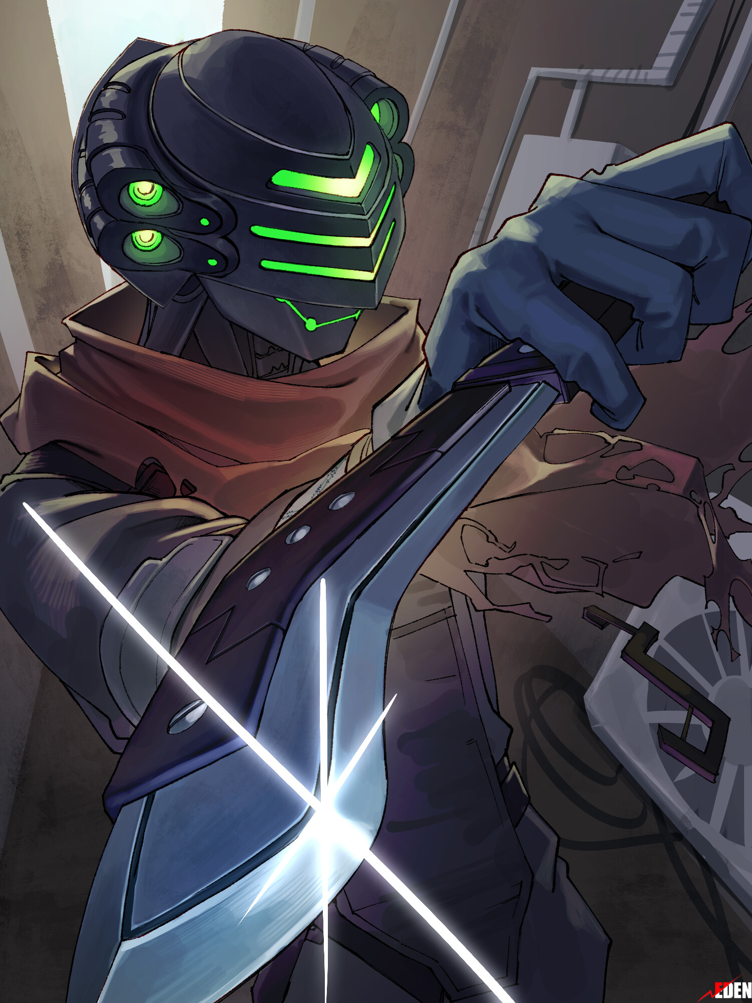 自身を攻撃しようとした対象を、装備する【フックショット又は投擲武器】の射程まで跳躍した後先制攻撃する。その後、自身は【緊急起動した光学迷彩】を纏い隠密状態になる(この一連の動作は行動を消費しない)。能力:SPD 214
