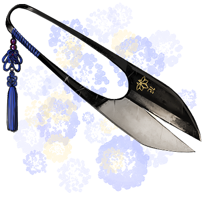 年代物な握り鋏。付喪神・藍花の本体。持ち手を藍染組紐と房飾りでお洒落にしている。