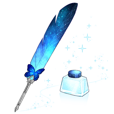 星を散りばめたような空色の羽根ペン。銀のペン軸を飾る蒼蝶が空を繋ぎ留まる。