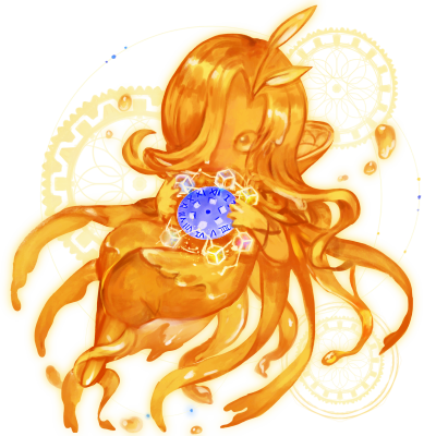 琥珀色の水のような精霊。蒼の文字盤を携えた、時空の守り人。普段はキアと呼んでる。