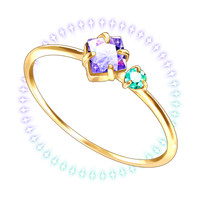 金色のピンキーリング。スクエア型のタンザナイトの隣で、エメラルドが小さく煌めく。