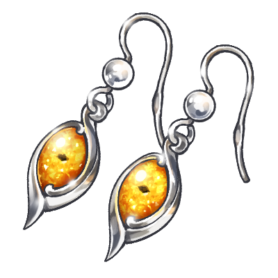 琥珀。呼魄。シンプルなデザインのピアス。濃い金色のアンバーがうっとりと見ている。