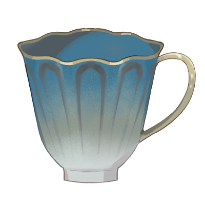 瑠璃釉をまとった陶製のティーカップ。実家から持ち出したお気に入り。