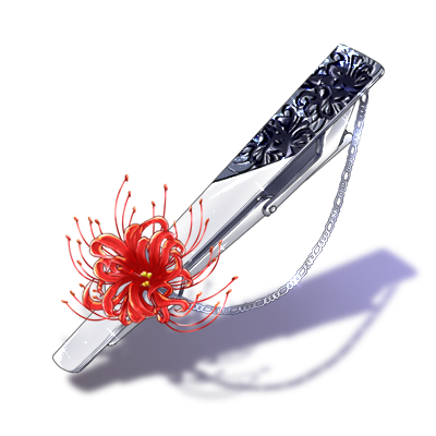 淡い白金の土台にちいさな赤い彼岸花が一輪咲いたネクタイピン。満開の秋の思い出に。