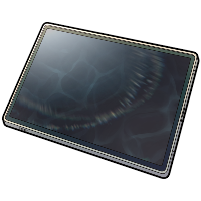 業務用端末を改造した白いタブレットPC。己の視界を外部へ映す変換機付き。