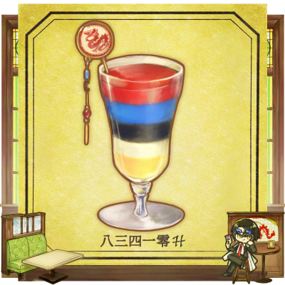 黄・白・黒・青・赤の五層からなる、五行相生イメージの神薙・ウツロ概念カクテル。