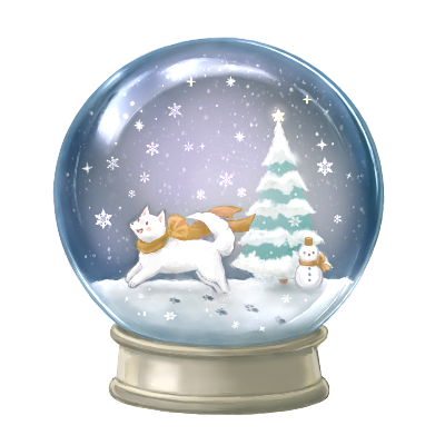 星空を閉じ込めたスノードーム。降り注ぐ雪の中、小さな白い犬が駆け回っている。