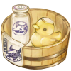 古来からの伝統に基づく、健康ランドの館内着です。可愛い笑顔の牛の絵付き。