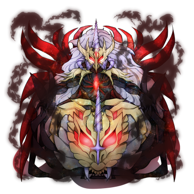背中には巨大な紋章があり、額に青い角に黒い鎧を装着し巨大な龍に乗っている謎の存在レベル35