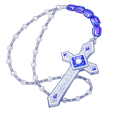 肌身離さず所持するロザリオ。師より受け継ぎ祝福を受けた。手放すと真の力を開放する