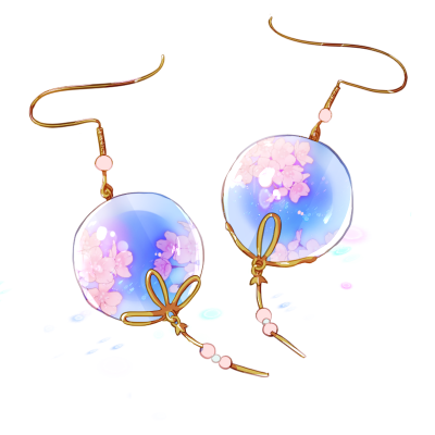ピアスに仕立てた手作りの蜻蛉玉。水面に浮かぶ桜を思わせる、大切な|思い出《絆》。