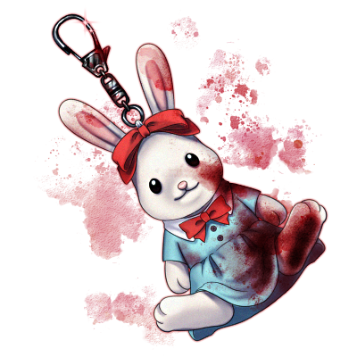 赤黒い染みのついた女児向けのキーホルダー。わたしをわすれないでね。