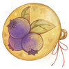 赤色組紐が揺れる藍苺柄の刺繍が入った胡桃釦のブローチ。 手に取ると刺繍の柄が…?