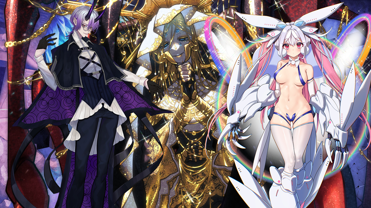 【唱】楽園|闢《ひら》く14の霊格よ来たれ。即ち 『囀る沈黙』レティセンス、 骸纏ノ姫『清羅』、 心と可能性を探求する者、 犯罪鬼妖教授『モリアーティ』、 人でなしの吸血鬼『白河・サナトリス』、 怪異使役少女『エリス・ローレル』、 祝福と呪詛の担い手、 バニエル・クロノジャッカー、 隠神刑部、 淫蕩の悪魔『アスモデウス』、 人間災厄「狂科学」ジェーン・ドゥ、 ミストレス・クリファ、 邪剣・禍骨、 ブラフマン・アシュタ!」