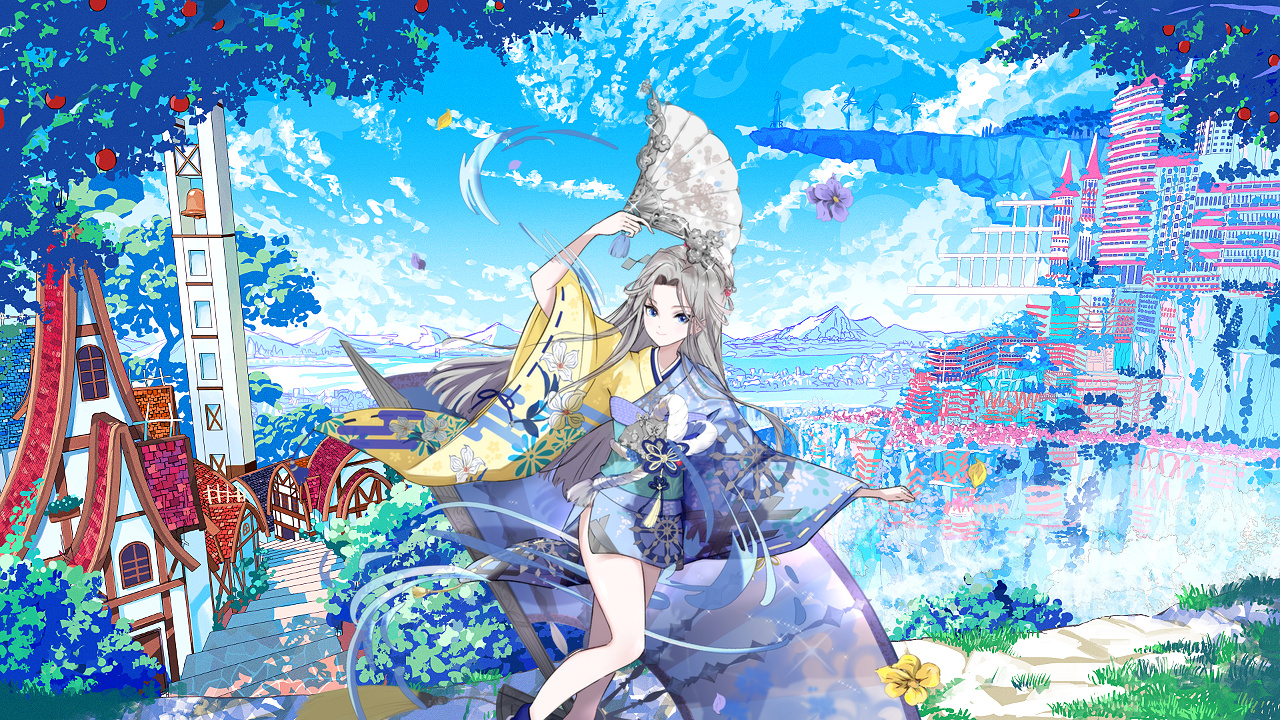 霧が晴れた小道の先に広がる、色とりどりの屋台と、甘くてふんわりした果実の香り。