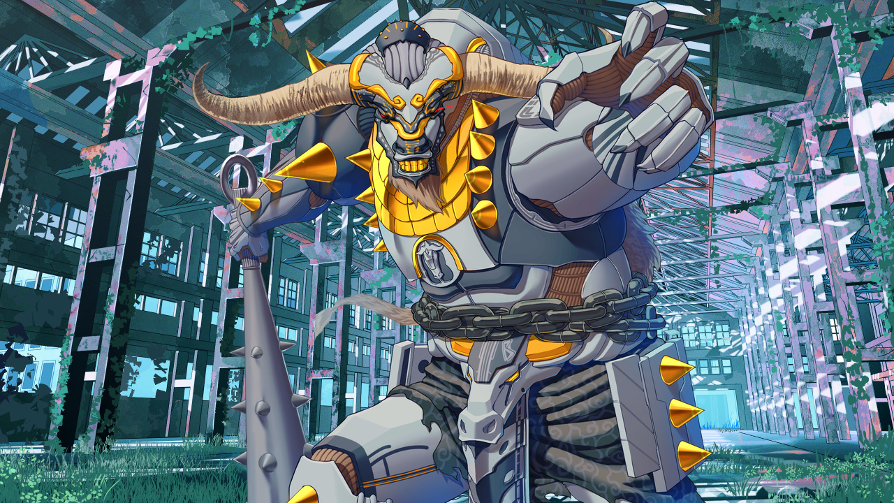 鋼鉄の体躯は雄々しき雄牛を象ったものであり、鋲を配した鎧や手にした金棒は恐ろしげな雰囲気を放っていた。