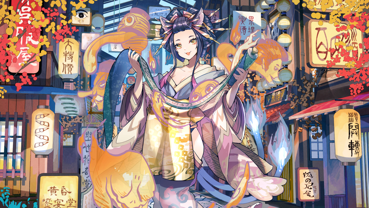 続けて緊張感に欠ける声が響いて、着物姿の女性が降ってくる。着地した彼女は華美な着物の裾を払って、金色の目でこちらを見た。