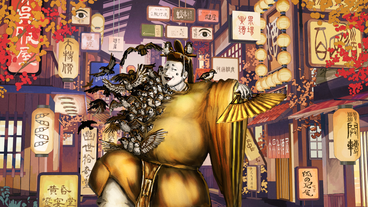 「おぬしは志織ではないか。相変わらず無欲でおじゃるな。まあよい、麿は急いでいるでおじゃる。そうだ志織よ、よしみじゃから教えてやるでおじゃる。今この街にいると危ないでおじゃる。今すぐどこかに行でおじゃる」
