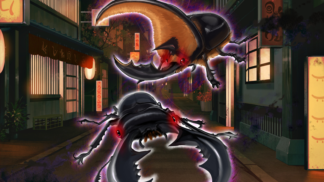 『デスカブトならびにヘルクワガタ』──かつての熱狂的闘虫ブームの主役たち。だが光あるところに影があり、飼育中にうっかり逃げ出した事故やブーム後の不法投棄と言った問題も多発したらしい。