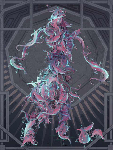 「村人は夜な夜な、カミサマって呼ばれてるもんを貪り食って……同時に、貪り食われてる。いいか、食い合ってんだわ。美味い美味いって言いながら。気色悪いネ。それが『儀式』として扱われて、クヴァリフの仔まで召喚されてるみたいでな」
