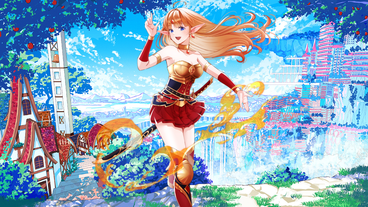 抜群のスタイルを大胆に魅せる華やかなミスリルアーマーに身を包んだエルフの美少女闘士だ。