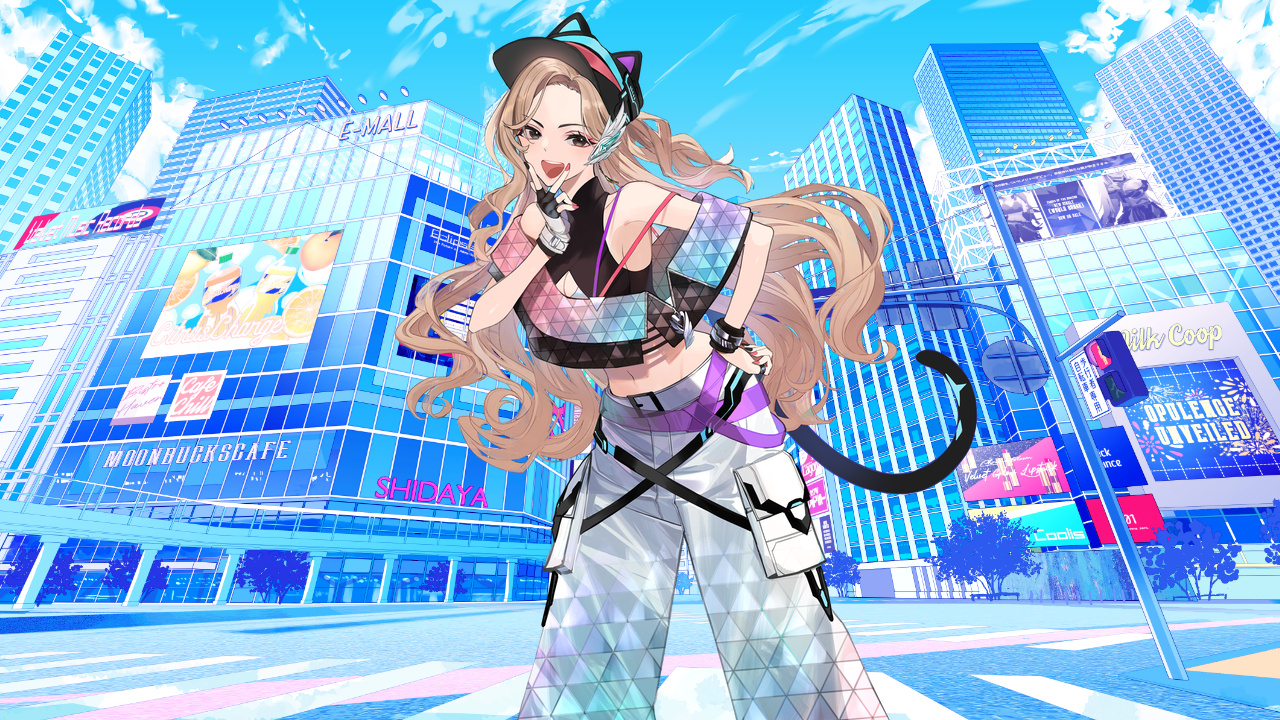 猫耳キャップに合わせた、猫のしっぽは彼女の機微に合わせて丸まる。