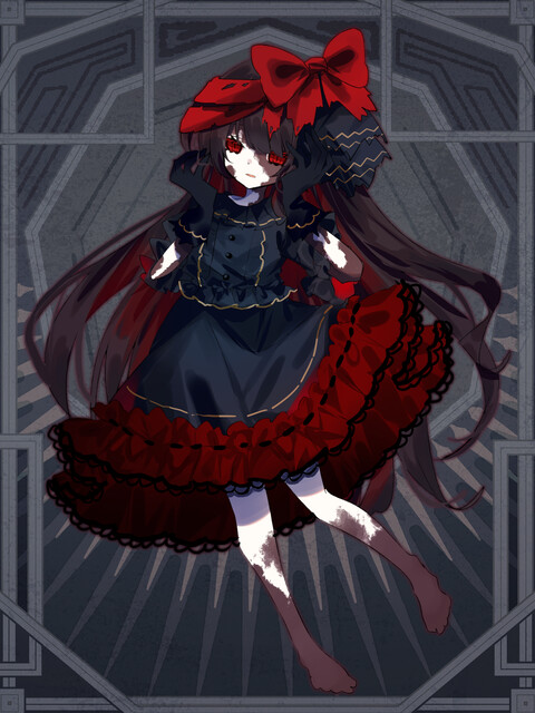 ……水中で動かなくなった『それ』を背に。キュイキュイ鳴くイルカのような声ではしゃぐ、黒と赤、華やかなドレスの少女。くるくるステップを踏んで、最期にぶくりと上がった泡を見てごきげんに。彼女は水槽へと手を伸ばした。