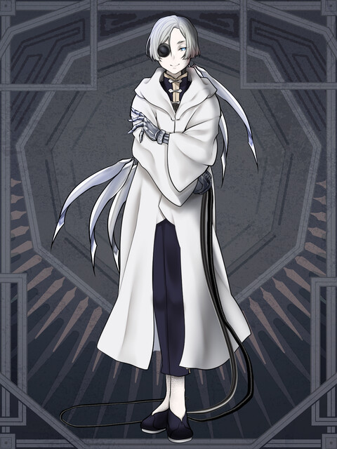 刈り込んだ短髪の白髪。汗止めのバンダナを額に巻き、首には保護ゴーグルを提げた男。その作業着の裾は煤で黒く、左腕は途中から義体。口には煙草を挟み、目は疲れていながらも鋭い光を放っている。