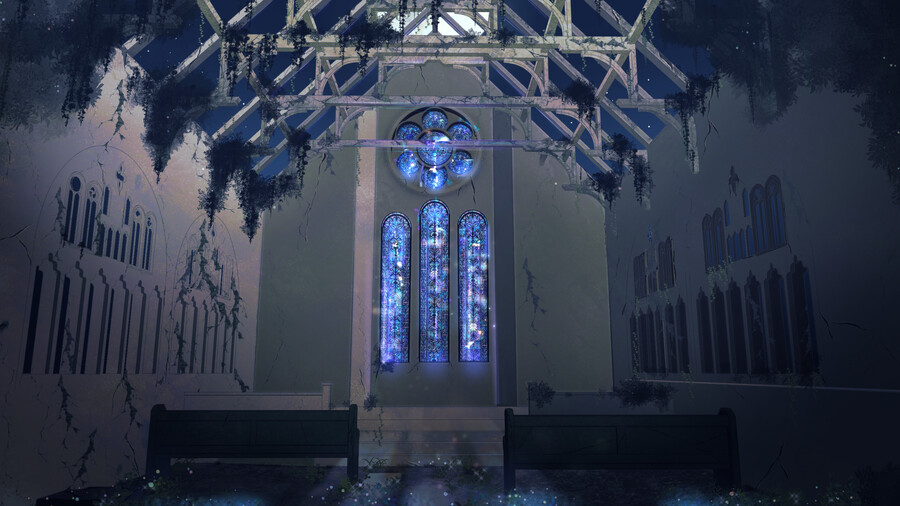 廃墟の罅の隙間、昏く淀んで見えぬ高い天井、用を為さない階段の下、敷き詰められた花々の合間から覗く僅かな灰色の床――一挙手一投足を見詰める眼差しが、漠然と貴方たちの身を捉えている。しかし。