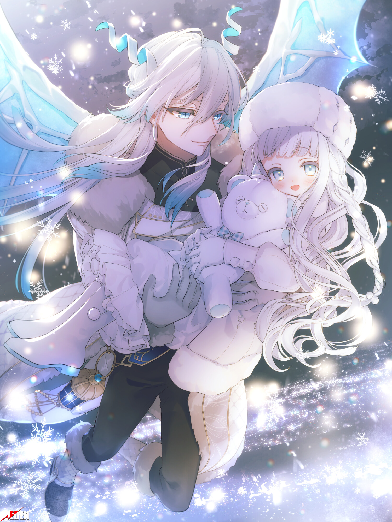 ぬいぐるみをしっかり抱えたちいさな真白の|リュシル《お姫様》を両腕に抱き上げ、背の竜翼を巨きく広げて風の流れを掴み、空気の流れを路の様に滑ってゆく。