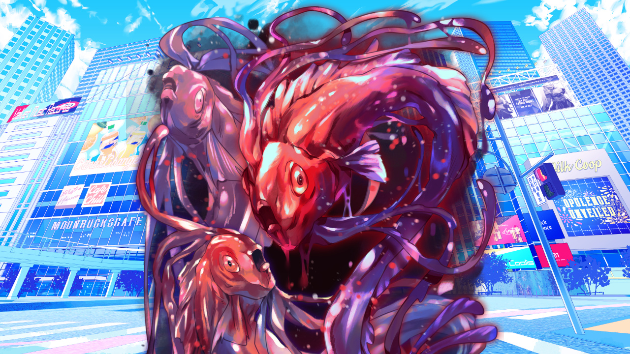 赤い魚のような体をしたインビシブルの群れ、ビチビチと空中を飛びまわり獲物を探す姿は、実際のところ、綺麗で和みすら与えてくれる金魚たちとは正反対の醜悪さ、一緒にしたら悪いなと思いながら、ぐっと拳を構える。