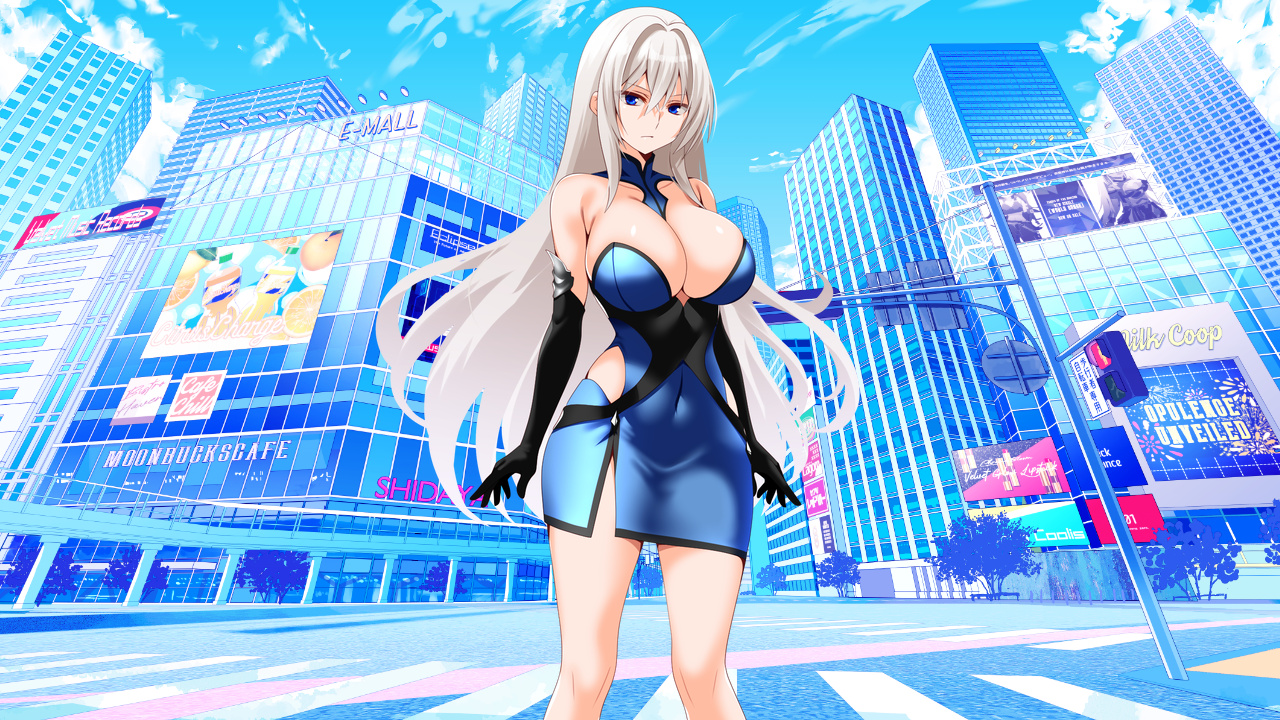瞳に似た青いドレスを身に纏うエレナは美しく映えるが、普段着には扇情的で、√EDENの街中では人目を引きすぎる。