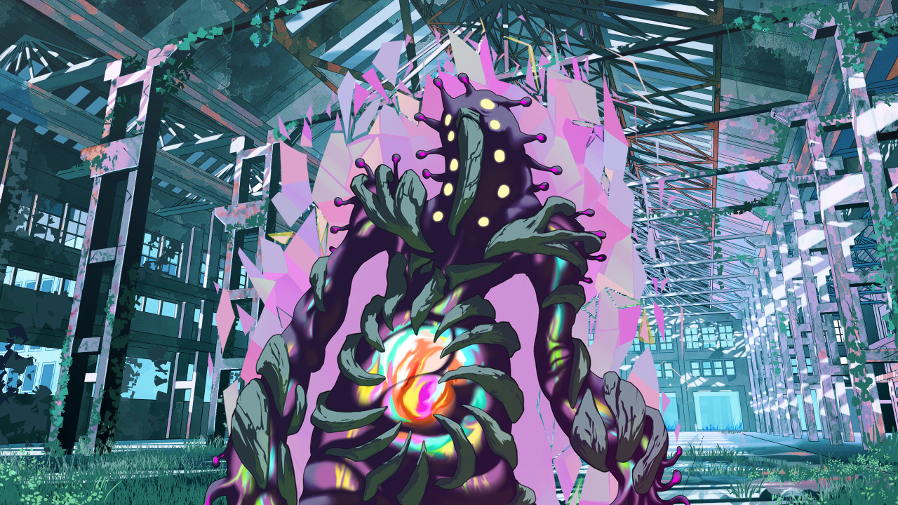 透空の言葉に頷いたタケルが駆ける。デザイアモンスターの腹部、謎の輝きを放つ『核』のような場所へ!