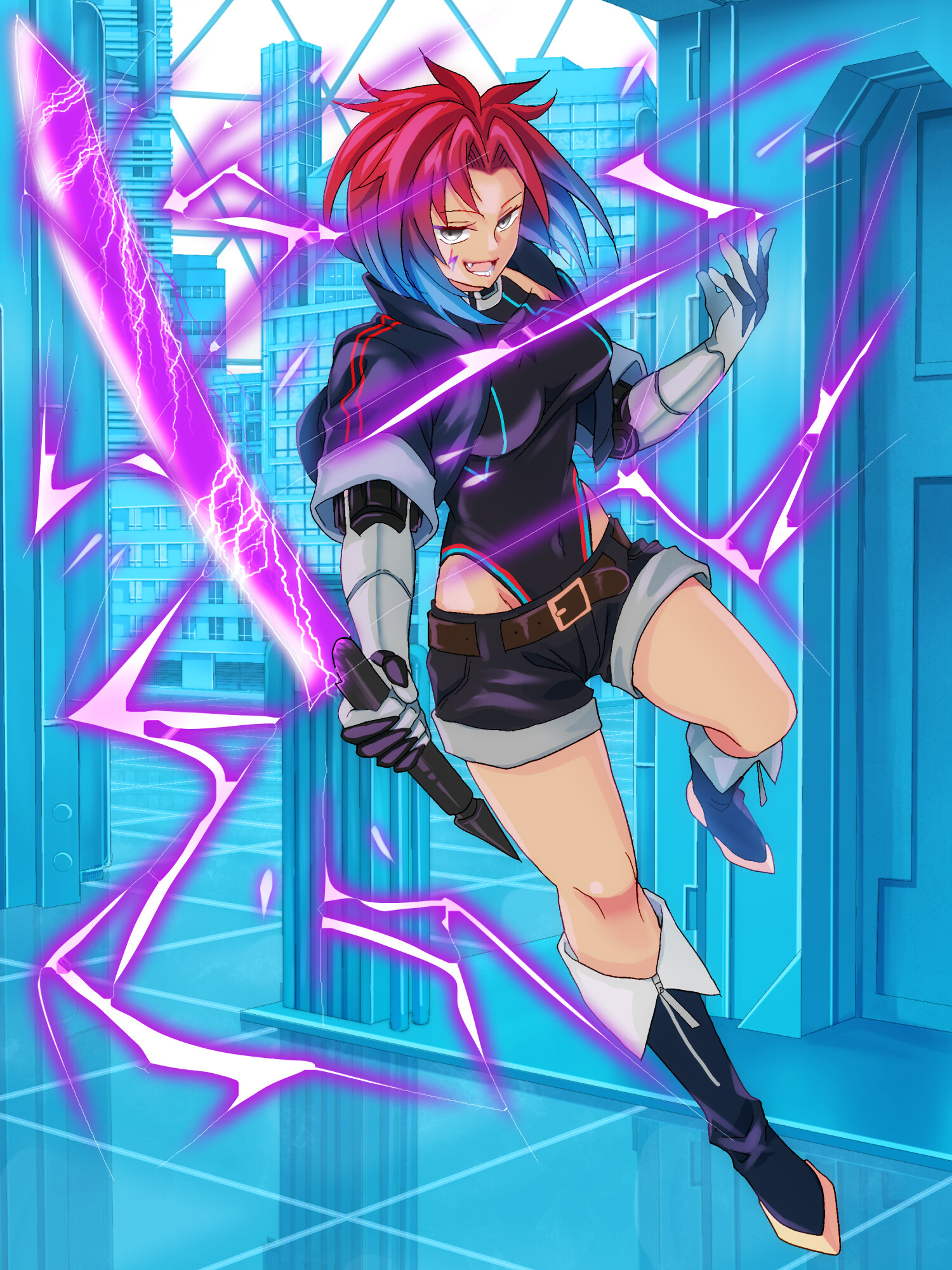 裂ッ!!(赤紫の雷を中心として青紫の稲妻がまきつく、不可思議な電撃をおびた左の手刀を思いっきり振り下ろすと、落雷よろしく雷電の刃が爆速で叩き落されてきた)