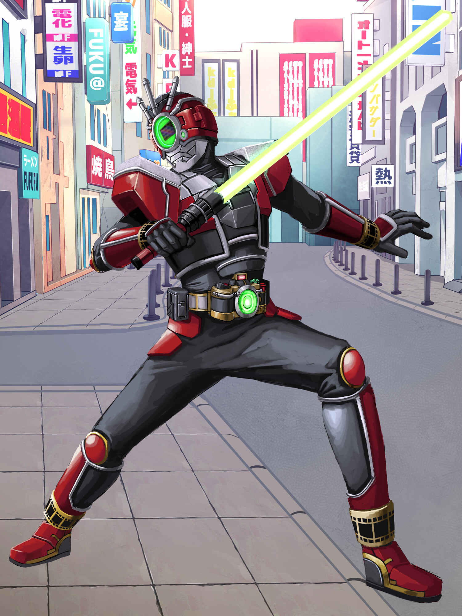 (駆け寄る赤い装甲。閃光剣の軌道を触覚で捉え、躱そうと身を翻した直後)