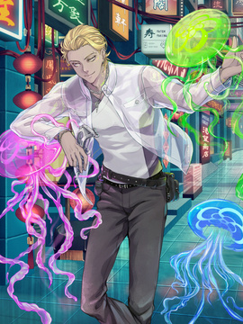 帽子にスカーフにとフリルたくさん! 中でもパレオのリボンの透明感がものすごく好き。クラゲの透き通った質感が良く表現されてて、波間にこんな美人なクラゲさんが漂ってたらどんな生き物でも近寄っちゃうよね。そんな西洋のお話あった気がする。